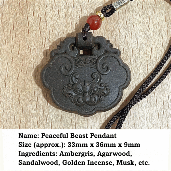 Furthermore, the pendant helps release the soul’s inner light, enhance righteous energy (Zheng Qi), and promote a state of health, clarity, and joyful tranquility. Its subtle, grounding fragrance evolves with wear, offering continuous aromatherapy benefits known in traditional wellness practices to reduce stress, improve focus, and balance emotional flow.