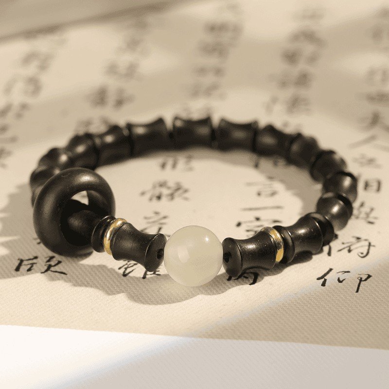Ebony bamboo bracelet, rising step by step, luminous stone running ring, Chinese exquisite bracelet, green sandalwood rosewood bracelet