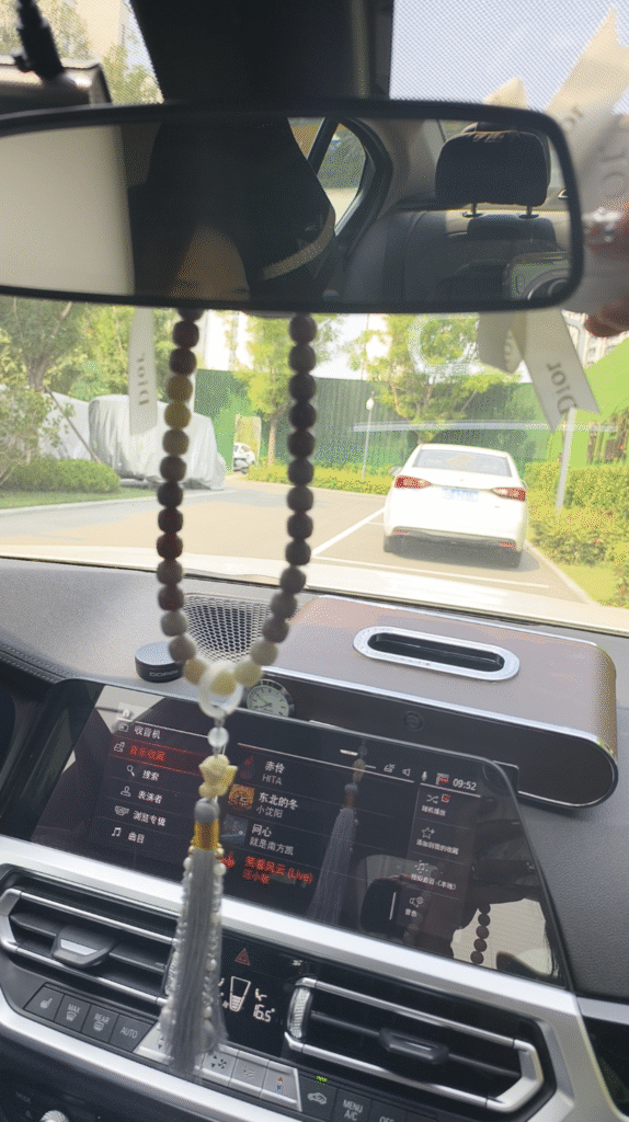 This beaded car hanger is absolutely lovely. The natural brown and cream-colored beads have a wonderful organic feel, and the grey tassel adds an elegant touch. It hangs perfectly from the rearview mirror without obstructing the view. I especially appreciate how it sways gently while driving, creating a calming rhythm. It pairs beautifully with the ambiance of my car’s interior (as you can see in my photo with the music player interface). The quality is excellent – the beads are smooth and evenly strung. It arrived securely packaged and was exactly as described. A simple yet meaningful addition to my car that makes every journey more mindful. Highly recommended for anyone seeking a touch of tranquility on the road!